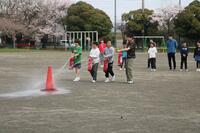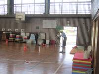5・6年代表児童による消火器を使った消火体験、防火扉体験も行い、児童全員が防災に対する意識を高めることができました。