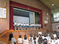 今年度最後の表彰朝会では、夏休みに書いた「しきなみ短歌コンクール」の表彰や、